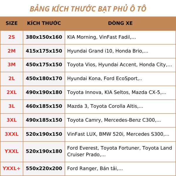 Dưới đây là hướng dẫn chọn kích thước bạt phủ ô tô đúng chuẩn, giúp bạn chọn được chiếc bạt phù hợp, ôm sát thân xe và bảo vệ hiệu quả: