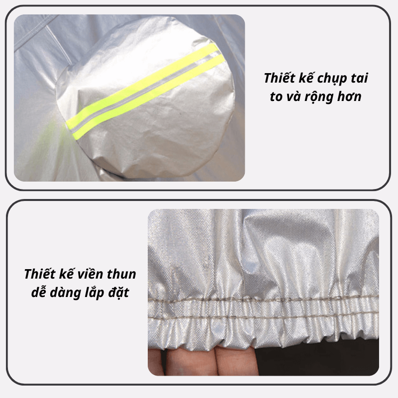 Tại các vị trí hai tai gương, đầu xe và đuôi xe, bạt được tích hợp lớp phản quang thông minh. Khi có ánh sáng chiếu vào, các chi tiết này sẽ phát sáng rõ ràng trong đêm, giúp phương tiện khác dễ dàng nhận biết và tránh va chạm. Đây là điểm nổi bật giúp tăng cường tính an toàn khi đỗ xe trong khu vực tối hoặc ít ánh sáng.
