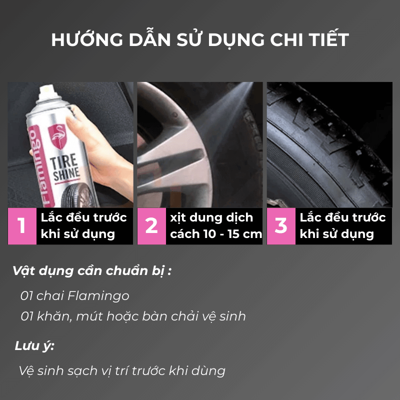 Việc sử dụng bình xịt Flamingo F010 để làm mới và bảo vệ các chi tiết nhựa cao su trên ô tô hoàn toàn đơn giản, ai cũng có thể thực hiện ngay tại nhà. Làm đúng các bước dưới đây sẽ giúp sản phẩm phát huy tối đa hiệu quả, mang lại bề mặt đen bóng tự nhiên và bền đẹp hơn theo thời gian.