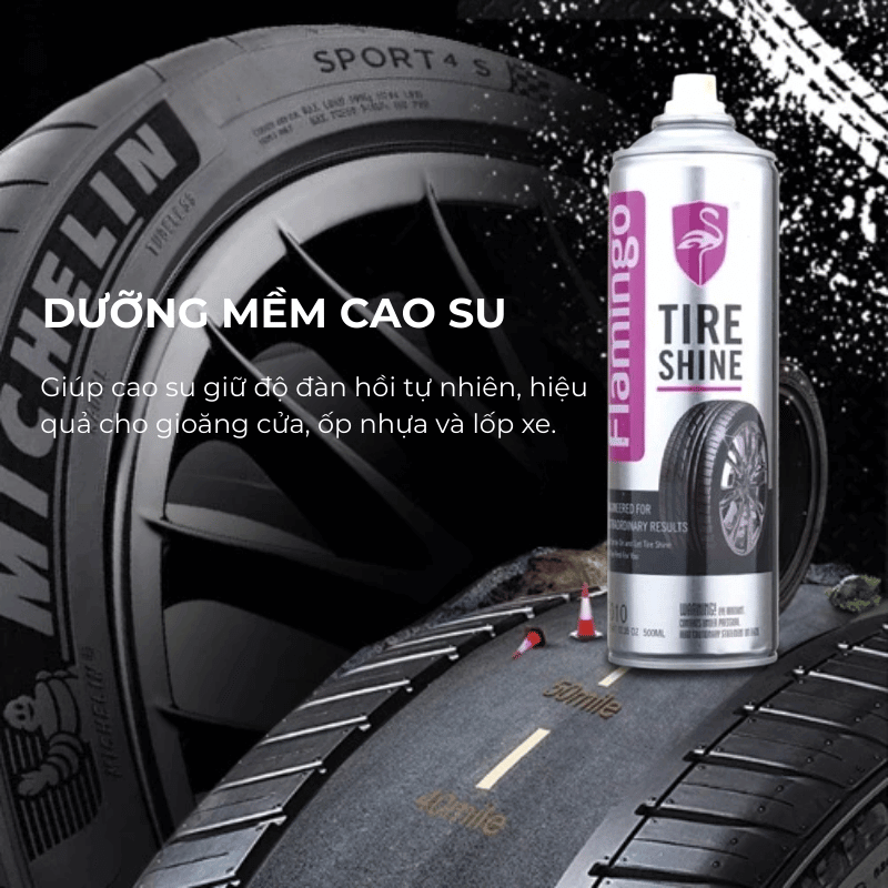 Flamingo F010 không chỉ làm bóng mà còn cung cấp dưỡng chất giúp các chi tiết cao su duy trì độ đàn hồi tự nhiên. Điều này đặc biệt hữu ích cho gioăng cửa, ốp nhựa ngoại thất và lốp xe những khu vực thường xuyên chịu tác động của nắng nóng và bụi đường.