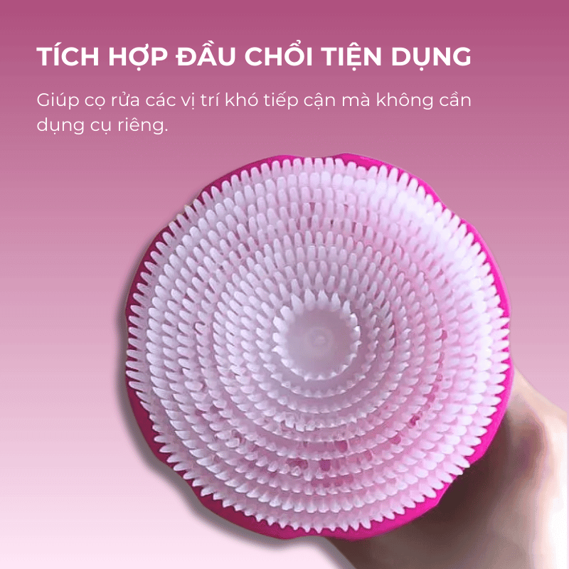 • Dùng đầu chổi tích hợp hoặc khăn mềm chà nhẹ, tập trung vào những vùng bẩn lâu ngày để tăng hiệu quả làm sạch.