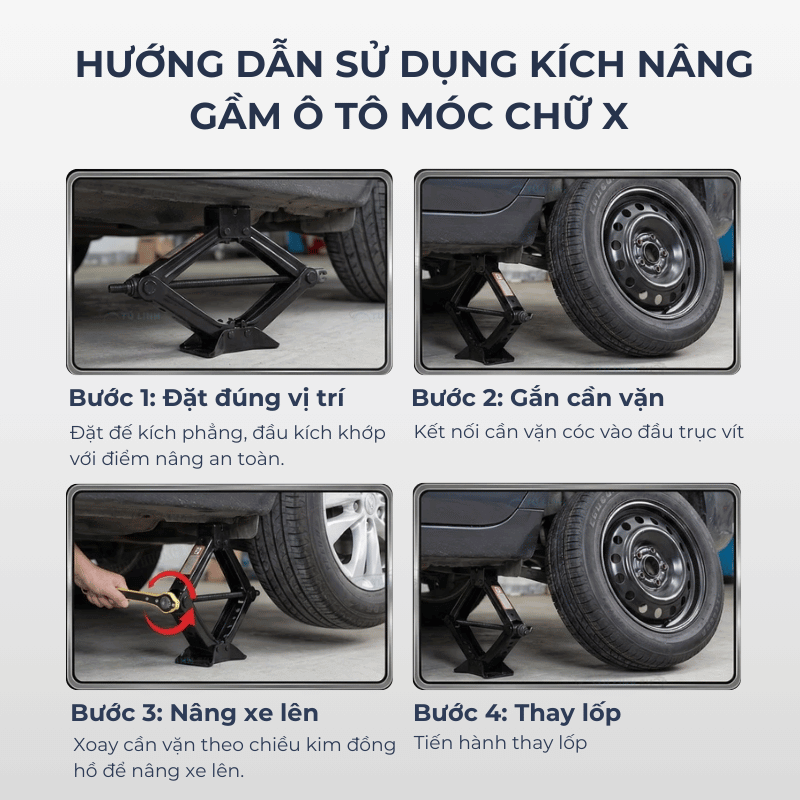 Để đảm bảo an toàn và đạt hiệu quả tốt nhất khi nâng xe, bạn cần sử dụng kích móc chữ X đúng quy trình. Dưới đây là hướng dẫn chi tiết giúp bạn sử dụng kích một cách an toàn, đúng kỹ thuật: