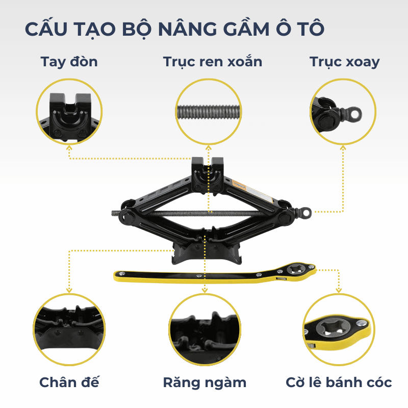 Phần ren nâng của kích được gia công bằng thép cứng, độ bám ren cao giúp chuyển động quay nhẹ, đều và an toàn. Khi xoay tay quay, lực được truyền rất hiệu quả, giúp nâng xe lên dễ dàng mà không mất quá nhiều sức. Ren xoắn chất lượng cũng hạn chế tối đa hiện tượng trượt hoặc tuột ren khi đang nâng xe.