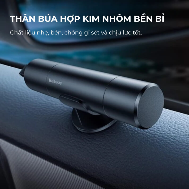 Thân búa phá kính Baseus được gia công từ hợp kim nhôm cao cấp, mang lại cảm giác cầm chắc tay nhưng vẫn đảm bảo trọng lượng nhẹ. Vật liệu này giúp búa chịu lực tốt, chống gỉ sét và duy trì độ bền cao trong môi trường ô tô.