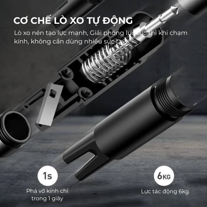 Cơ chế phá kính lò xo tự động kích hoạt lực tức thì
