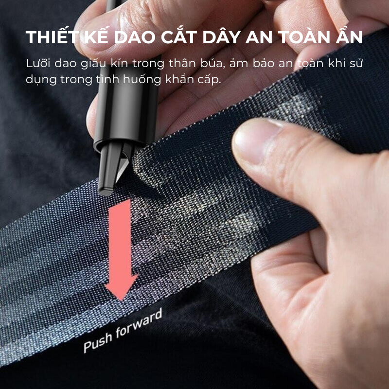 Lưỡi dao cắt dây an toàn được giấu gọn bên trong thân búa, chỉ để lộ khe cắt vừa đủ. Nhờ đó, người dùng có thể cắt dây an toàn nhanh chóng mà vẫn hạn chế tối đa rủi ro gây thương tích trong quá trình sử dụng.