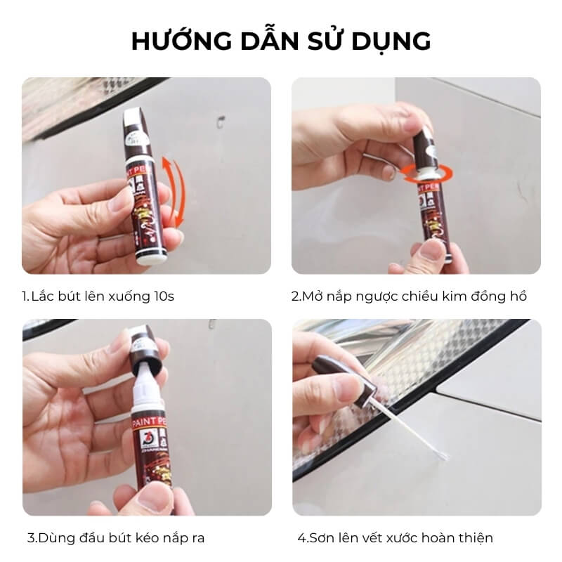 Dưới đây là hướng dẫn chi tiết giúp bạn sử dụng bút tẩy màu nano đúng cách và đạt hiệu quả che phủ vết xước tốt nhất. Thực hiện đúng các bước này sẽ giúp lớp nano bám đều, tiệp màu và mang lại bề mặt sơn mịn đẹp như mới.