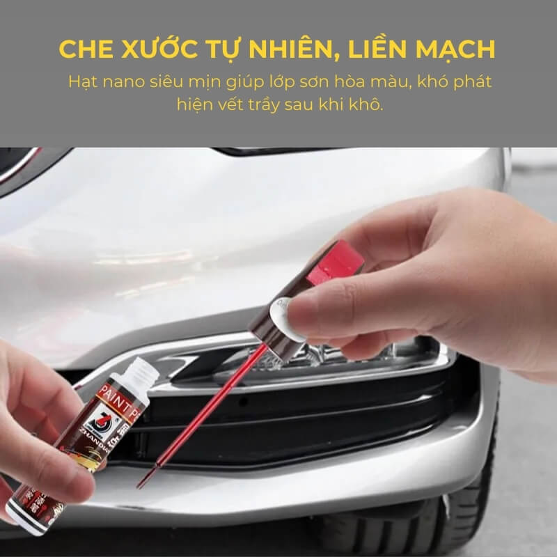 Công thức sơn nano thân thiện với bề mặt sơn gốc, không làm bong tróc hay ảnh hưởng đến lớp phủ xung quanh. Khi dùng đúng cách, sản phẩm giúp bảo vệ sơn xe và tránh tình trạng xuống màu theo thời gian.