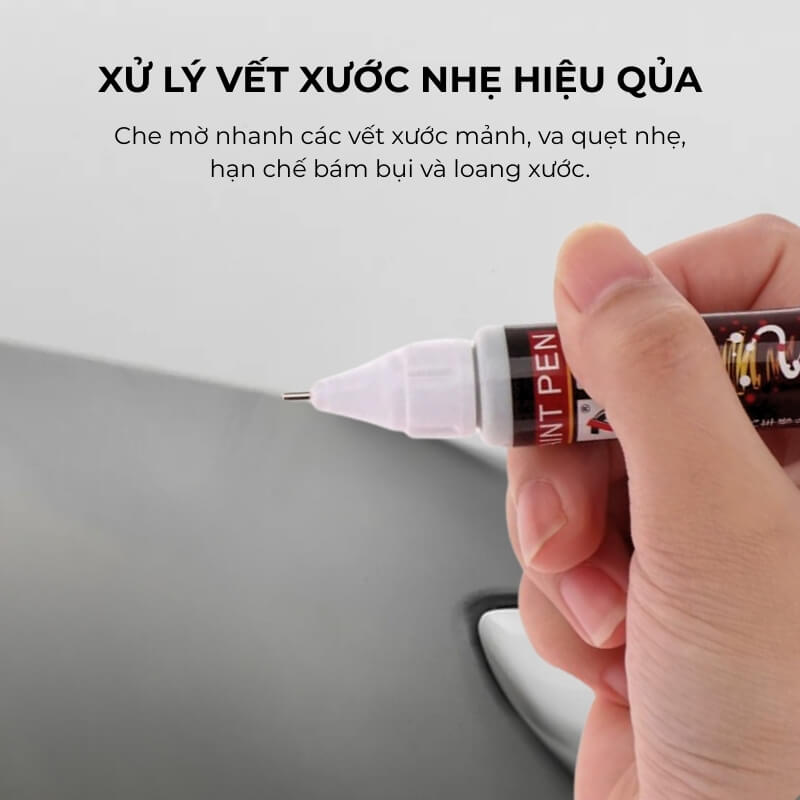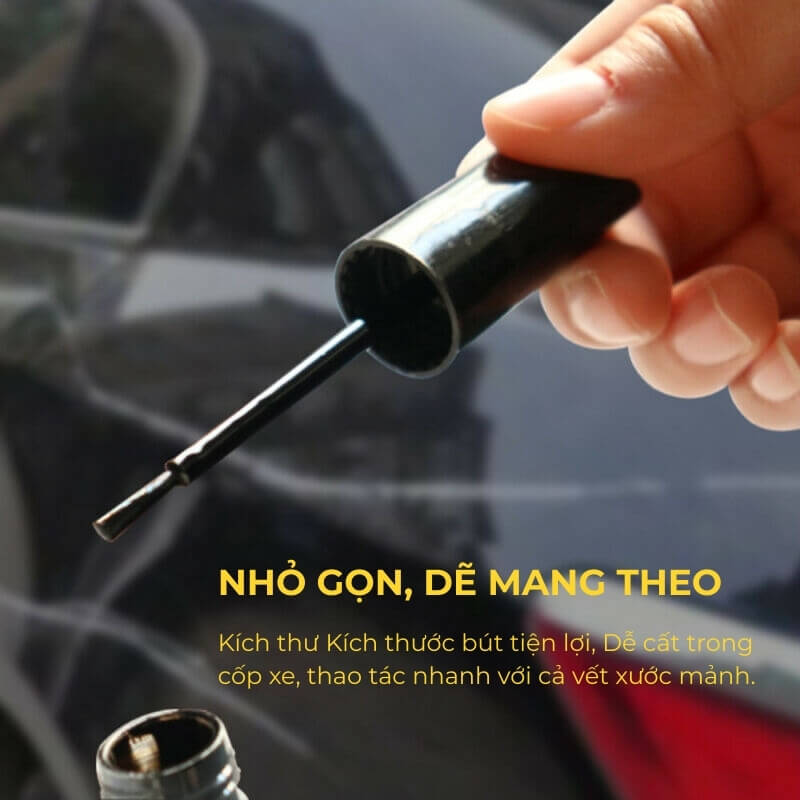 Kích thước bút nhỏ, dễ dàng để trong cốp xe hoặc túi dụng cụ. Điều này giúp bạn có thể xử lý vết xước ngay khi phát hiện, tránh để lâu khiến vết trầy bị oxi hóa hoặc khó che hơn. Thiết kế đầu bút cũng giúp thao tác chính xác, phù hợp cả với các vết xước mảnh.