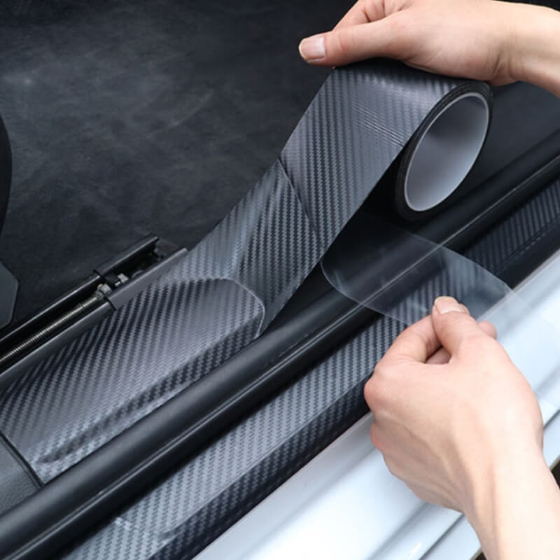 Mép cửa xe là khu vực nên dán dải carbon đầu tiên, bởi đây là vị trí thường xuyên chịu tác động khi mở cửa, lên xuống xe hoặc va chạm với vật cứng. Bên cạnh đó, bậc lên xuống cũng rất dễ bị trầy xước do ma sát từ giày dép, đặc biệt với xe gia đình và xe SUV.