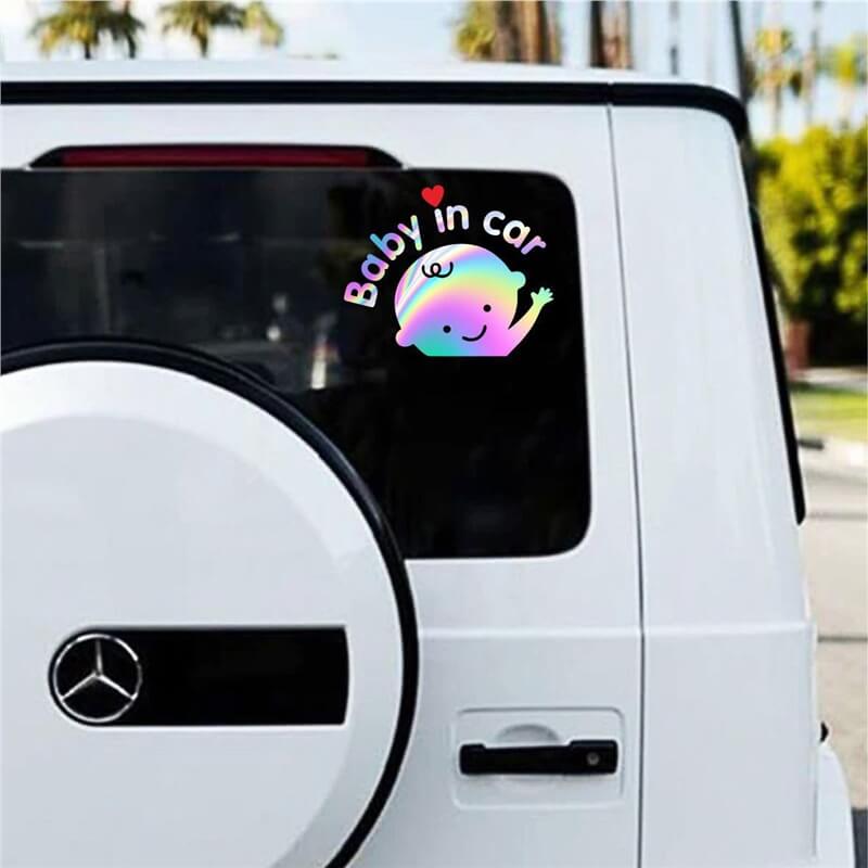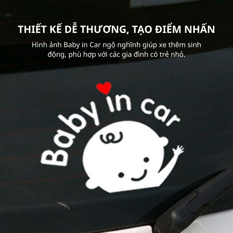 Hình ảnh Baby in Car được thiết kế ngộ nghĩnh, đáng yêu, phù hợp với các gia đình có trẻ nhỏ. Decal không chỉ mang tính cảnh báo mà còn giúp chiếc xe trở nên sinh động, thân thiện hơn, tạo cảm giác gần gũi và ấm áp trên mỗi chuyến đi cùng bé.