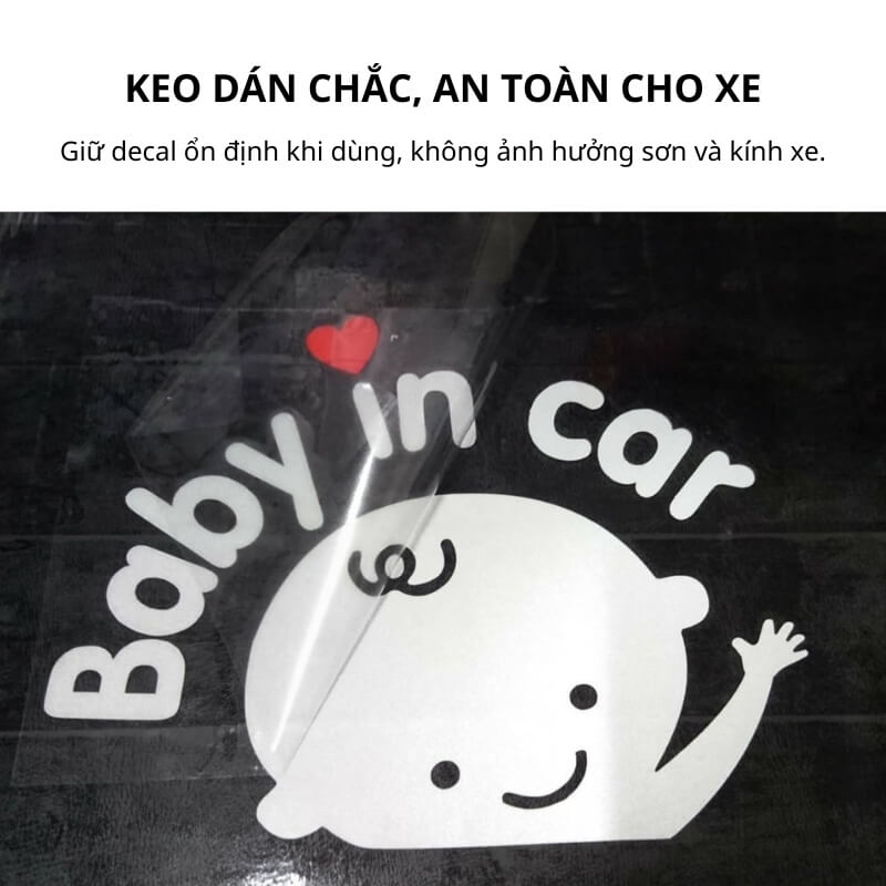 Decal được làm từ chất liệu phản quang, giúp hình ảnh và chữ trên tem nổi bật hơn khi có ánh đèn chiếu vào, đặc biệt hữu ích khi di chuyển vào ban đêm hoặc trong điều kiện ánh sáng yếu. Nhờ đó, các phương tiện phía sau dễ dàng nhận biết xe đang chở em bé và chủ động giữ khoảng cách an toàn.
