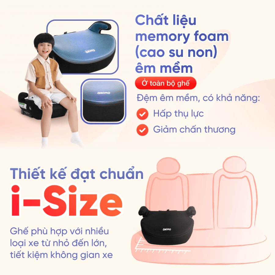 Đệm ngồi ô tô trẻ em Animo Comfy Isofix cho bé từ 6 – 12 tuổi