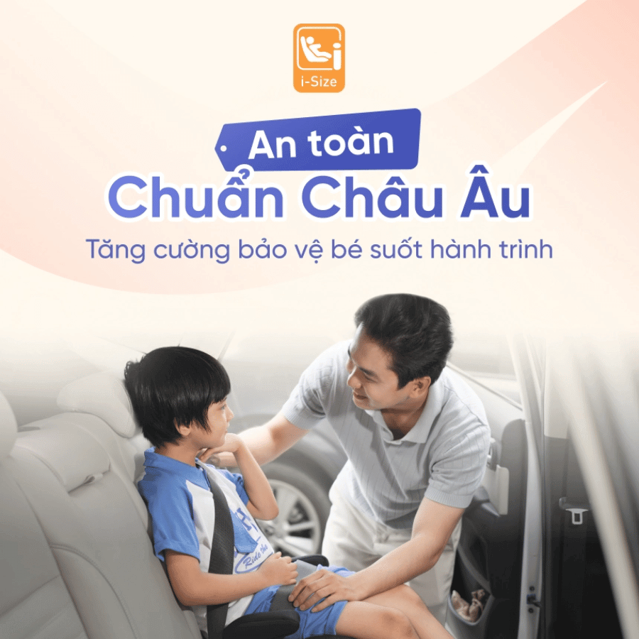 Ghế đạt chứng nhận i-Size (ECE R129), tiêu chuẩn an toàn cao nhất hiện nay dành cho ghế trẻ em trên ô tô. Thiết kế này giúp bảo vệ tối ưu vùng đầu, cổ và cột sống những khu vực dễ tổn thương nhất của trẻ. Ghế được thử nghiệm nghiêm ngặt ở nhiều tình huống va chạm để đảm bảo hiệu suất bảo vệ cao nhất.
