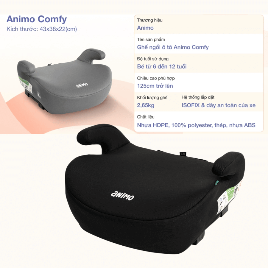 Thông tin chi tiết về Ghế ngồi ô tô trẻ em Animo Comfy Isofix