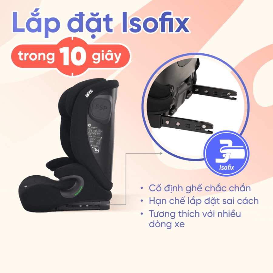 Hệ thống lắp đặt: ISOFIX & dây an toàn của xe