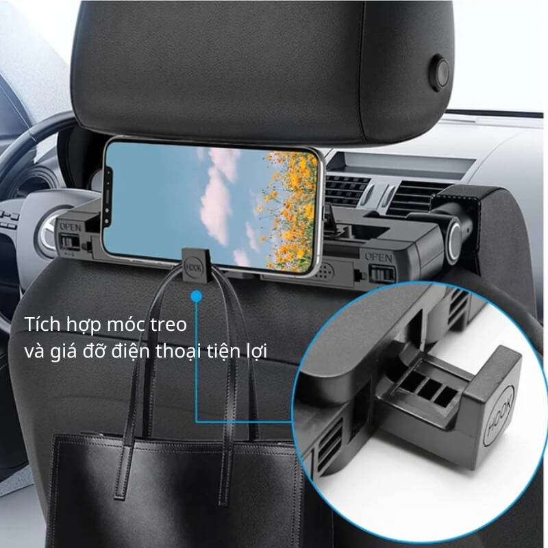 Gắn trực tiếp vào thanh tựa đầu của ghế ô tô bằng ngàm nhựa ABS chắc chắn. Không cần dụng cụ, thao tác chưa đến 1 phút. Phù hợp với hầu hết các mẫu xe 4-7 chỗ phổ biến trên thị trường.