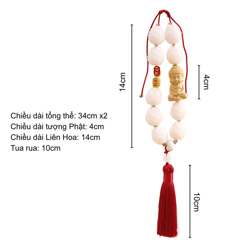 - Chuỗi liên hoa và các chi tiết được hoàn thiện thủ công tỉ mỉ, liên kết chắc chắn, phù hợp treo xe thường xuyên.