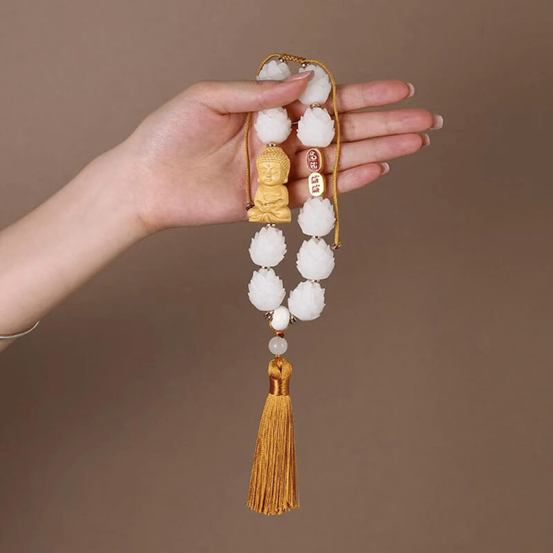 Khánh treo xe Phật Thích Ca – Chuỗi Liên hoa tâm an vạn lộ là sự kết hợp hài hòa giữa hình tượng Phật Thích Ca trang nghiêm và chuỗi liên hoa thanh tịnh, tượng trưng cho sự thuần khiết, tỉnh thức và che chở. Sản phẩm không chỉ tạo điểm nhấn tinh tế cho không gian nội thất xe mà còn mang ý nghĩa nhắc nhở người lái luôn giữ tâm an, vững vàng và hanh thông trên mọi nẻo đường.