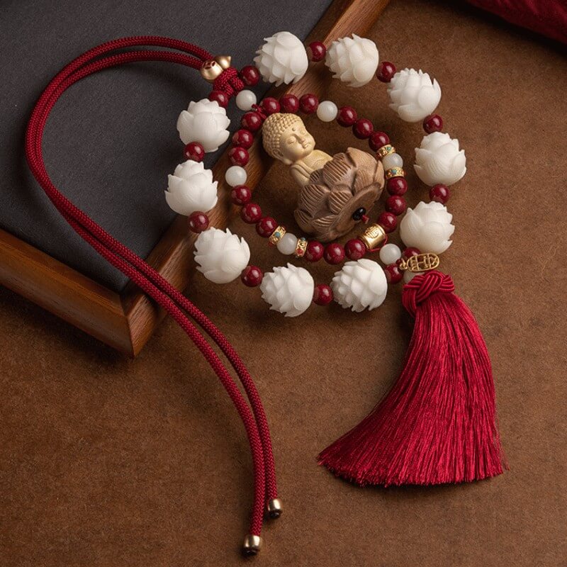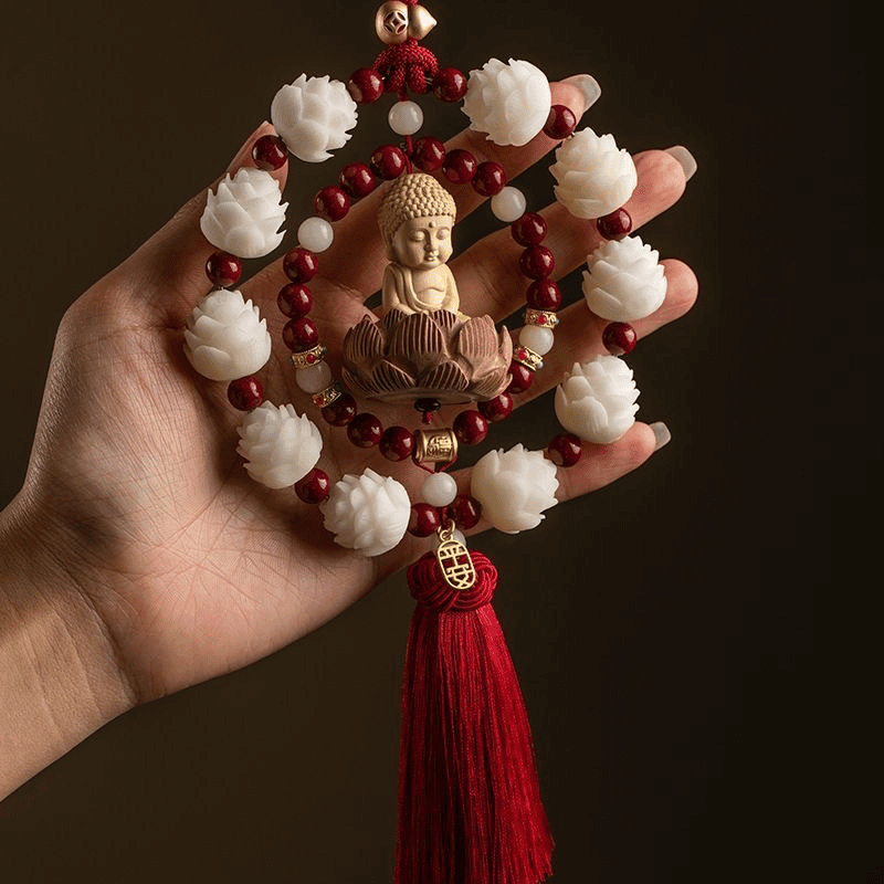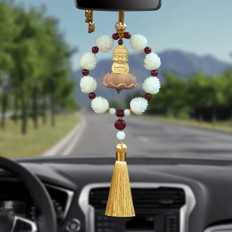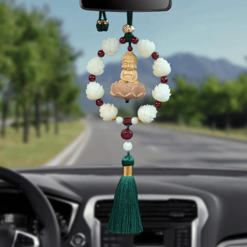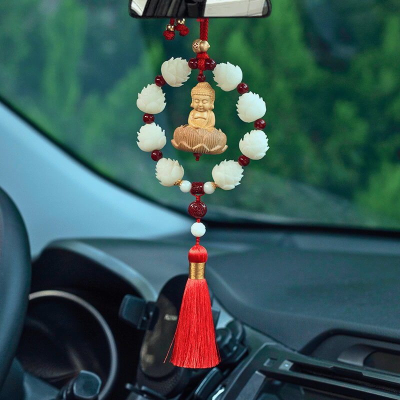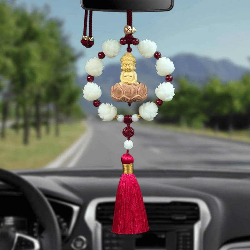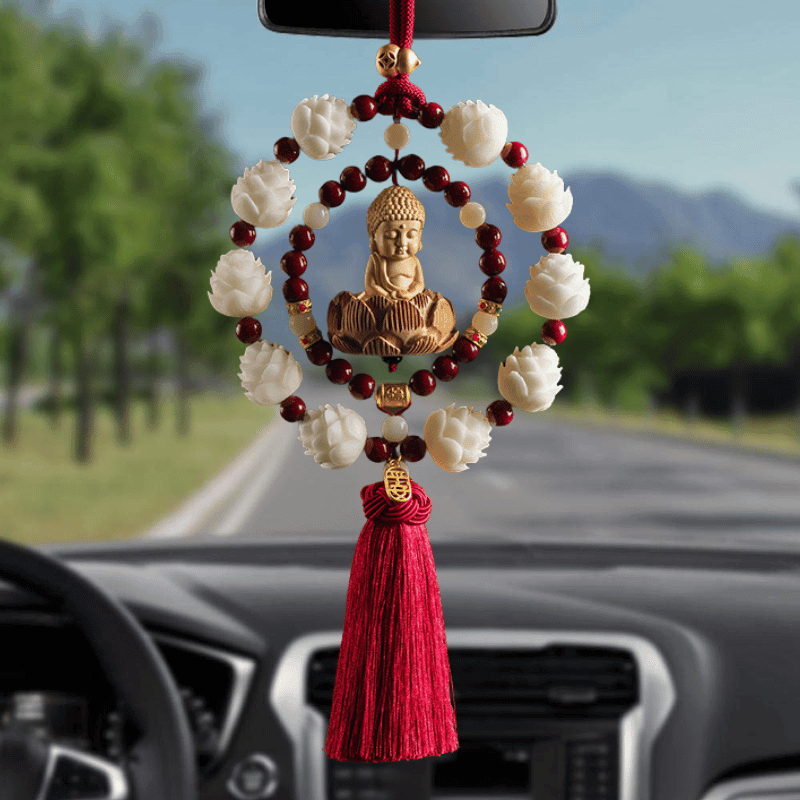 Vòng liên hoa thanh tịnh kết hợp cùng hạt chu sa phong thủy tạo nên nguồn năng lượng bảo hộ, giúp cân bằng không gian xe và hóa giải năng lượng tiêu cực. Thiết kế vòng tròn khép kín mang ý nghĩa che chở, viên mãn, giúp hành trình thêm thuận lợi.