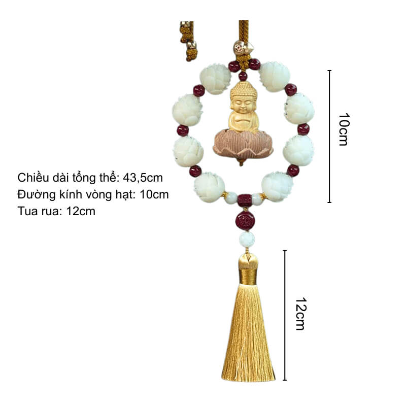 Khánh treo xe Phật Thích Ca thiền tọa – Liên hoa chu sa hộ pháp an tâm là sự kết tinh hài hòa giữa hình tượng Phật Thích Ca thiền tọa trang nghiêm, vòng liên hoa thanh tịnh và hạt chu sa phong thủy mang nguồn năng lượng bảo hộ mạnh mẽ. Không chỉ đóng vai trò là điểm nhấn trang nhã cho không gian nội thất ô tô, sản phẩm còn mang ý nghĩa tâm linh sâu sắc, như một lời nhắc nhở nhẹ nhàng để người lái luôn giữ tâm an định, tỉnh thức và vững vàng trên mỗi hành trình.