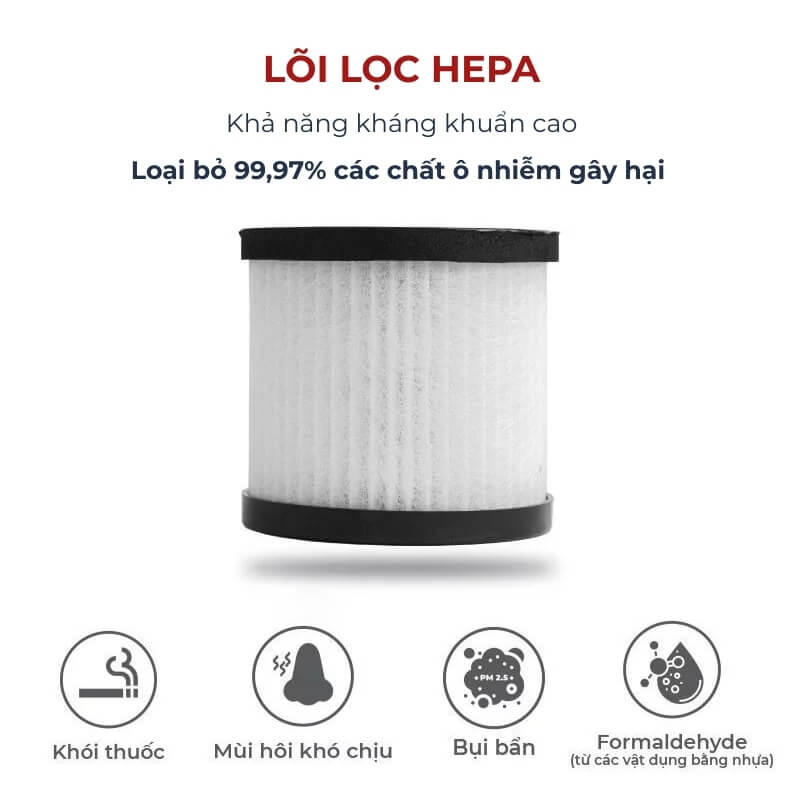 • Công nghệ HEPA 13 lọc được 99,97% bụi mịn từ 0.3 micron trở lên