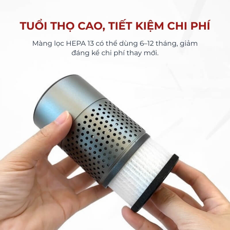 Trang bị màng lọc HEPA 13 không chỉ giúp bảo vệ sức khỏe cho bạn và gia đình mà còn tạo cảm giác dễ chịu trong suốt hành trình. Với tuổi thọ từ 6-12 tháng, sản phẩm còn giúp tiết kiệm chi phí bảo dưỡng mà vẫn đảm bảo hiệu quả lọc tối ưu.