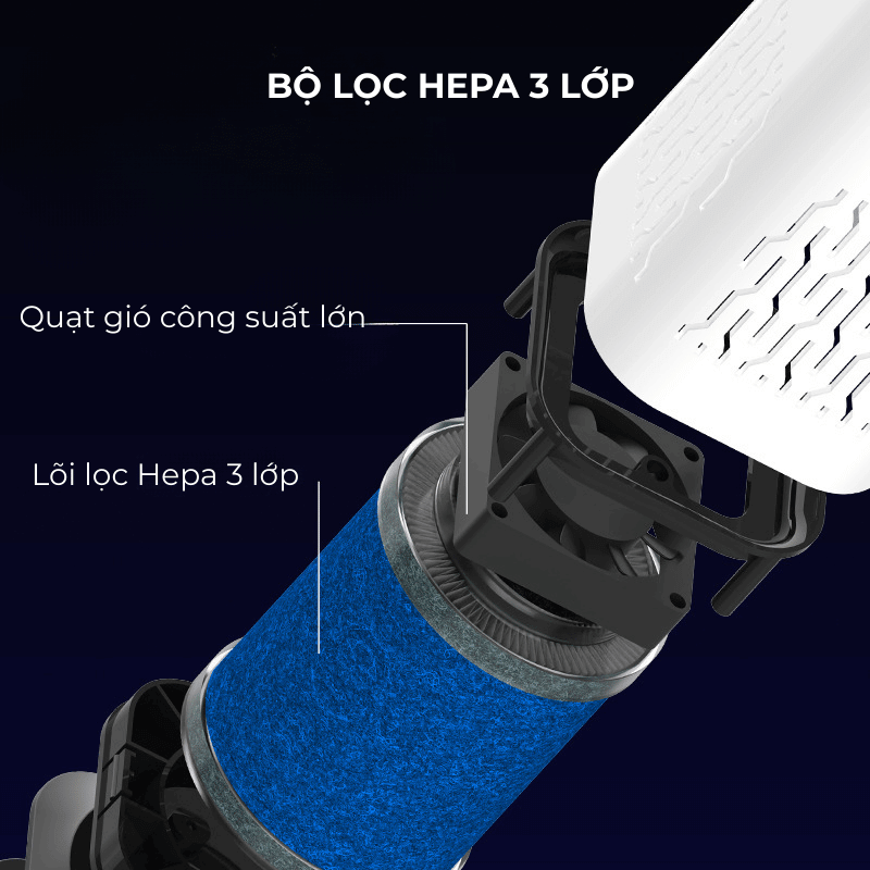 Bộ lọc HEPA 3 lớp kết hợp ion âm xử lý bụi bẩn và mùi hiệu quả