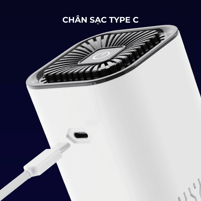 Máy lọc không khí mini K2 Portable Air Purifier sử dụng cổng sạc Type-C phổ biến, giúp kết nối thuận tiện với nhiều nguồn điện như cổng USB trên xe, pin dự phòng, củ sạc điện thoại… Điều này đảm bảo máy luôn hoạt động ổn định và dễ dàng mang theo trong mọi hành trình.