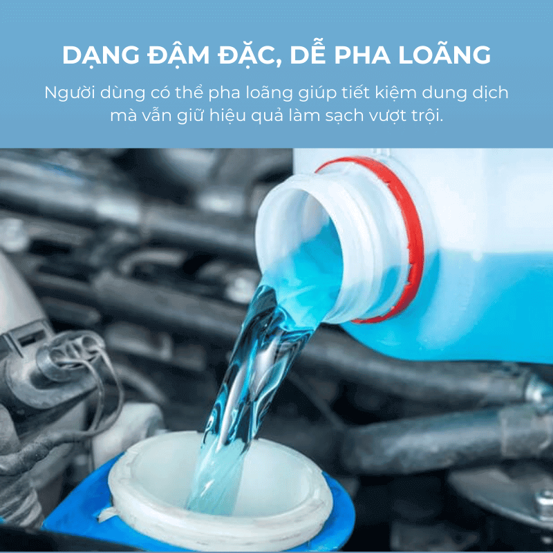 - Không pha quá loãng, vì dung dịch sẽ mất tác dụng làm sạch, gây ra vệt mờ khi gạt và không xử lý được dầu mỡ bám trên kính.
