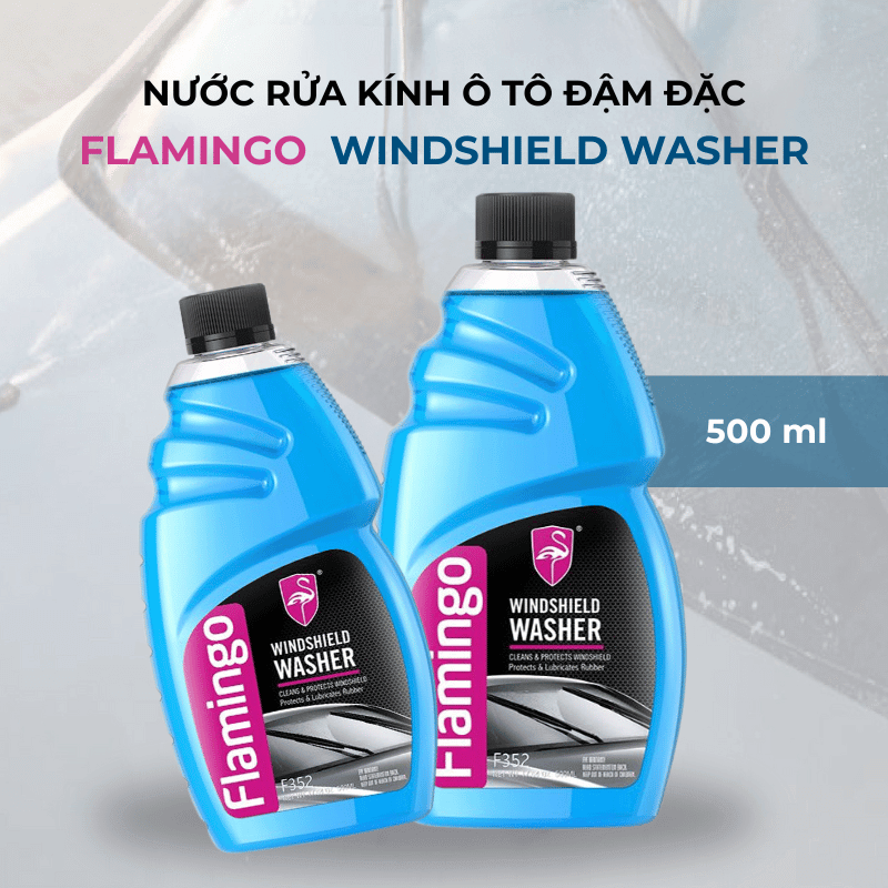 Phụ kiện xe VIP giới thiệu sản phẩm Nước rửa kính xe ô tô đậm đặc Flamingo Windshield Washer (F352) 500ml. Công thức đậm đặc hiệu quả làm sạch mạnh mẽ giúp kính trong suốt và hạn chế bám bụi trở lại Không gây ăn mòn hoặc trầy xước bề mặt kính.