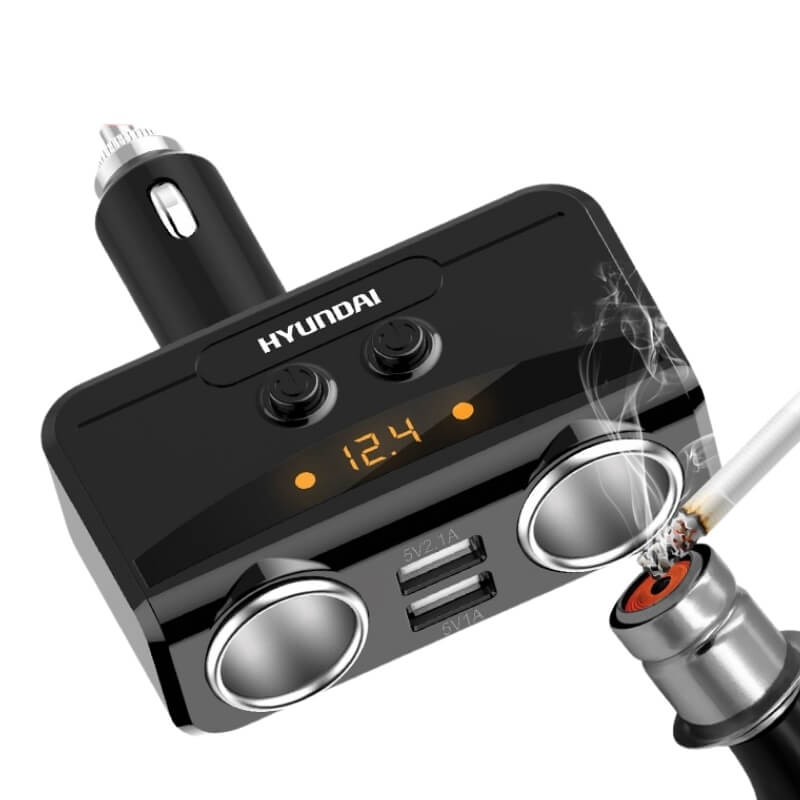 Tẩu sạc ô tô Hyundai HY87 2 cổng 12V là giải pháp mở rộng nguồn điện tiện lợi, giúp tài xế dễ dàng cấp nguồn cho nhiều thiết bị cùng lúc như camera hành trình, máy hút bụi, bơm lốp và điện thoại.