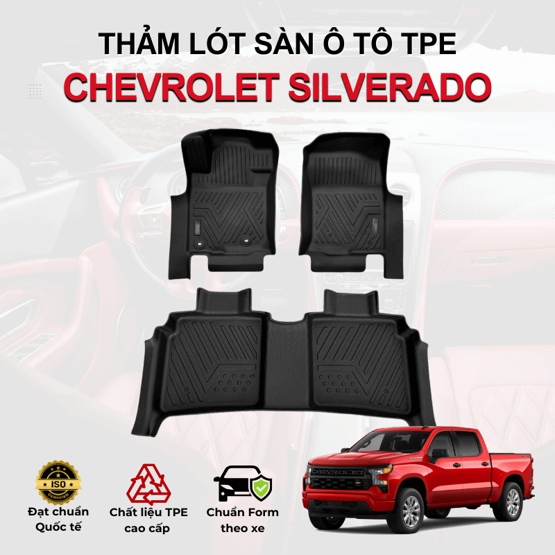 Với những đặc điểm nổi bật này, thảm lót sàn TPE không chỉ là một phụ kiện bảo vệ, mà còn là một phần không thể thiếu để nâng tầm phong cách thể thao cho Chevrolet Silverado của bạn. Hãy trang bị ngay hôm nay để mỗi chuyến đi không chỉ thoải mái mà còn tràn đầy phong cách và nhận các ưu đãi tốt nhất từ chúng tôi!