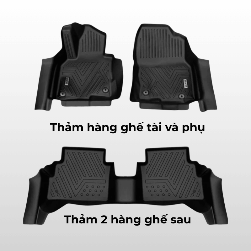 Mỗi sản phẩm đều được sản xuất riêng theo thông số khung sàn của từng dòng xe, giúp thảm ôm khít vào phần sàn zin nguyên bản. Thiết kế này không chỉ đảm bảo tính thẩm mỹ mà còn giúp bảo vệ sàn xe khỏi bụi bẩn và nước, giữ cho không gian nội thất luôn sạch sẽ và gọn gàng.